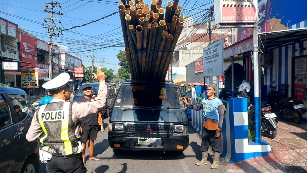 Cegah Kecelakaan dan Gangguan Lalu Lintas, Satlantas Polsek Klojen Ingatkan Pengemudi Pick Up dan Truk Overload