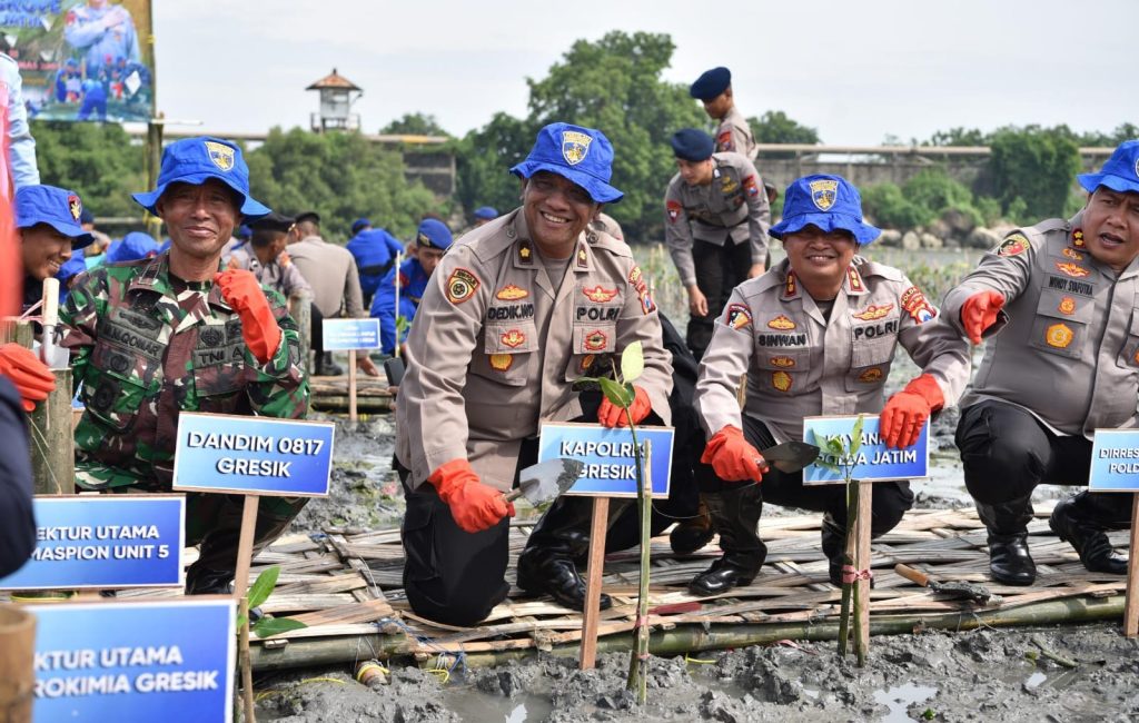 GRESIK – Ditpolairud Polda Jawa Timur kembali menunjukkan dedikasinya terhadap pelestarian lingkungan melalui kegiatan penanaman 11.000 bibit mangrove di Desa Lumpur, Kecamatan Gresik, Kabupaten Gresik.…