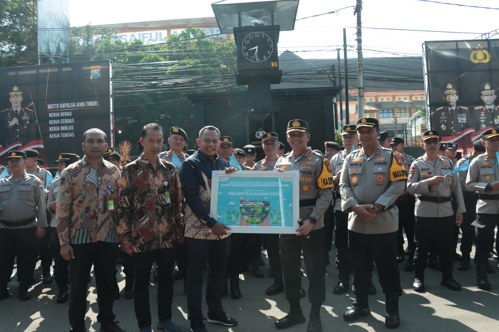 KOTA MALANG – PT Pertamina Patra Niaga menyerahkan sertifikat Zero Emisi “Energy Solution and Dekarbonisasi Partner” dan 20 pohon untuk Polresta Malang Kota pada Senin (19/2).