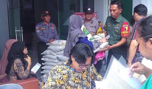 Pembagian bantuan beras juga diawasi Sekretaris Lurah (Seklur), Kasi Trantib, perwakilan Puskesos, Babinsa, Linmas, dan 198 warga penerima manfaat.