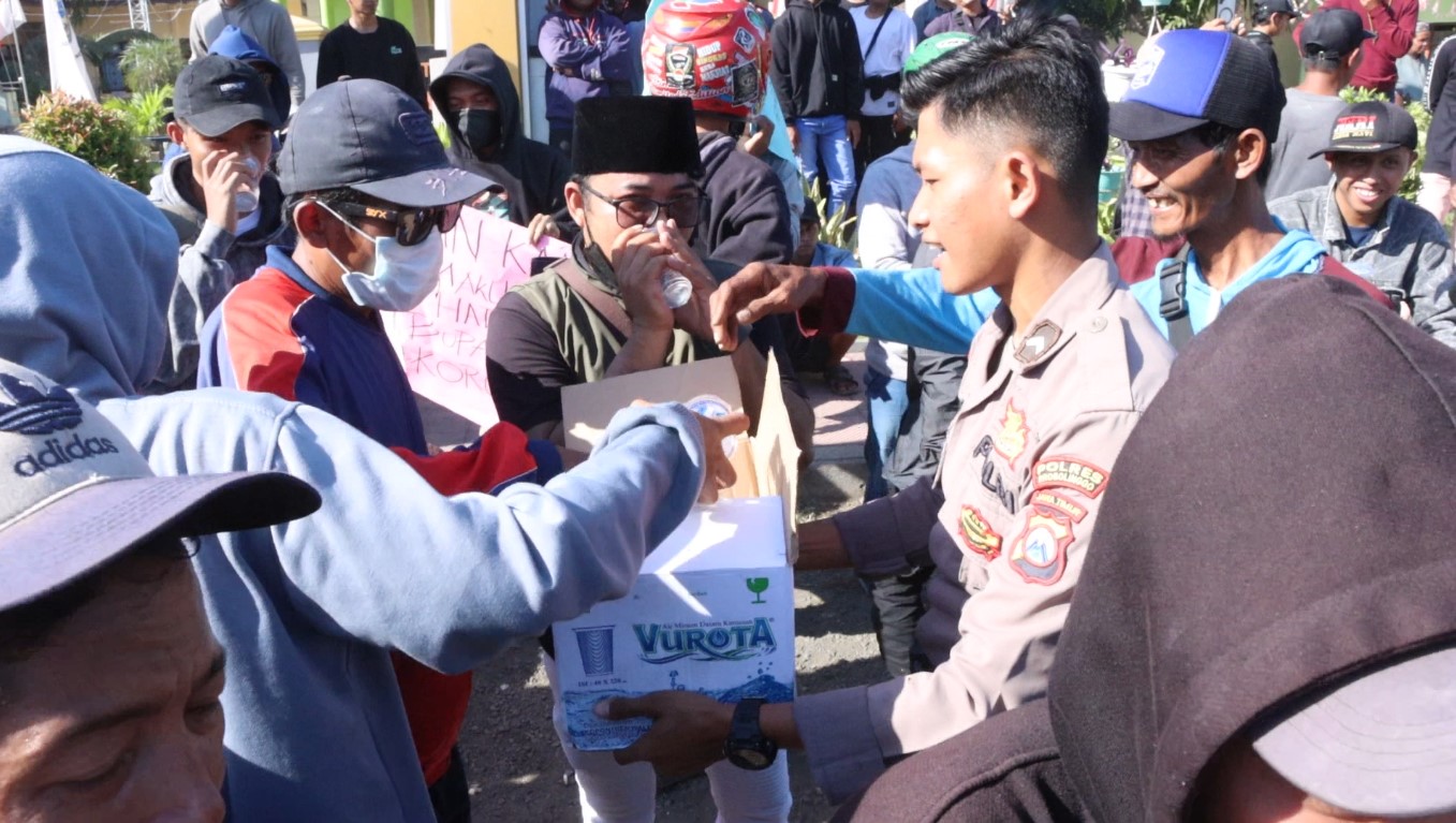 Lebih lanjut, Kapolres Situbondo AKBP Rezi Darmawan mengungkapkan pembagian air minum ini disambut baik oleh peserta aksi unjuk rasa.