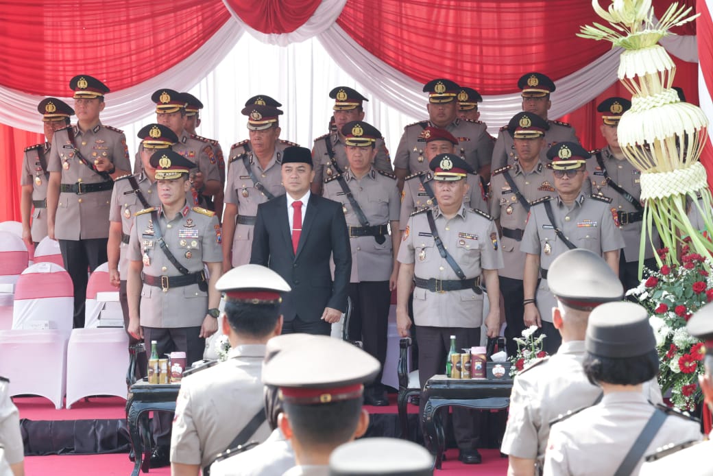 Jenderal Sigit bertindak sebagai inspektur upacara memasuki lapangan upacara sekitar pukul 09.10 WIB, yang diikuti oleh ratusan anggota Polri sebagai pasukan upacara. Orang nomor satu di Korps Bhayangkara langsung menuju mimbar upacara.