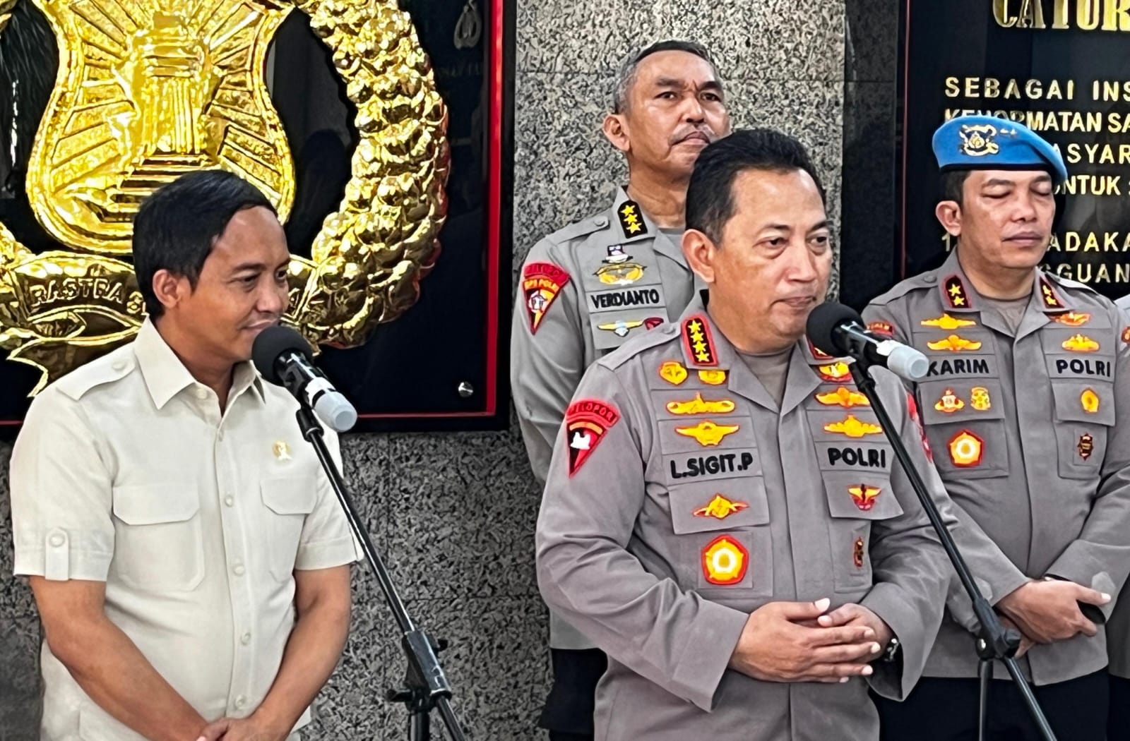 “Tentunya betul yang tadi disampaikan oleh beliau bahwa kita selama ini telah melaksanakan berbagai macam kerjasama. Mulai dari menjaga hutan terkait dengan masalah karhutla (kebakaran hutan dan lahan), sampai dengan penegakan hukum terkait dengan permasalahan-permasalahan kehutanan,” kata Jenderal Sigit dalam konferensi pers di Lobi Gedung Utama Mabes Polri.
