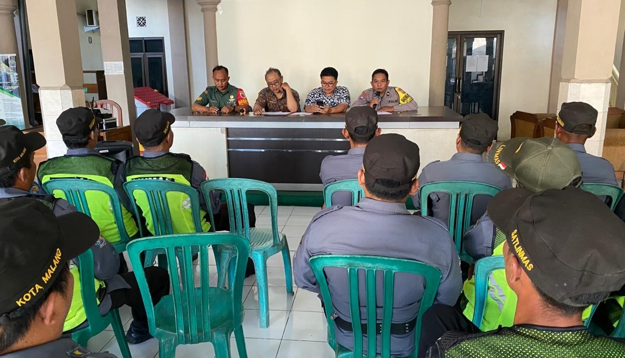 Polsek Kedungkandang – Dalam rangka memperkuat ketahanan keamanan di tingkat kelurahan, Bhabinkamtibmas Polsek Kedungkandang, Aiptu Bambang, bersama Lurah Tlogowaru, Kasi Trantib, dan Babinsa, memberikan pembekalan peningkatan kapasitas bagi Linmas Kelurahan Tlogowaru. (Kamis, 11/09)