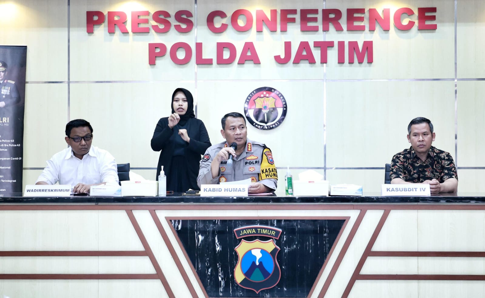 Hal itu seperti disampaikan oleh Kepala Bidang Hubungan Masyarakat (Kabidhumas) Polda Jawa Timur, Kombes Pol Dirmanto saat menggelar konferensi Pers di Gedung Bidhumas Polda Jatim,Selasa (01/10).