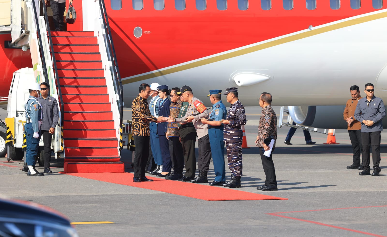 Setibanya di Bandara Internasional Juanda, Kabupaten Sidoarjo, Provinsi Jawa Timur, Presiden Jokowi akan langsung menuju Kota Surabaya dengan menggunakan mobil.