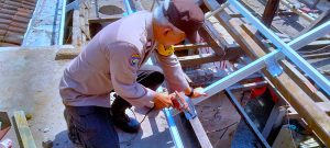 Aiptu Bagus tidak hanya monitoring keamanan, namun turut andil dalam proses pembangunan, termasuk membantu pemasangan material hingga atap genting rumah yang direnovasi.