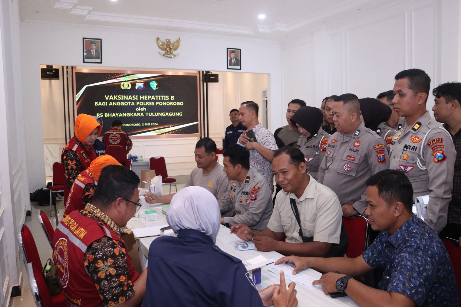 PONOROGO – Sebanyak 165 anggota Polres Ponorogo telah mengikuti program vaksinasi Hepatitis B dan deteksi dini narkoba.