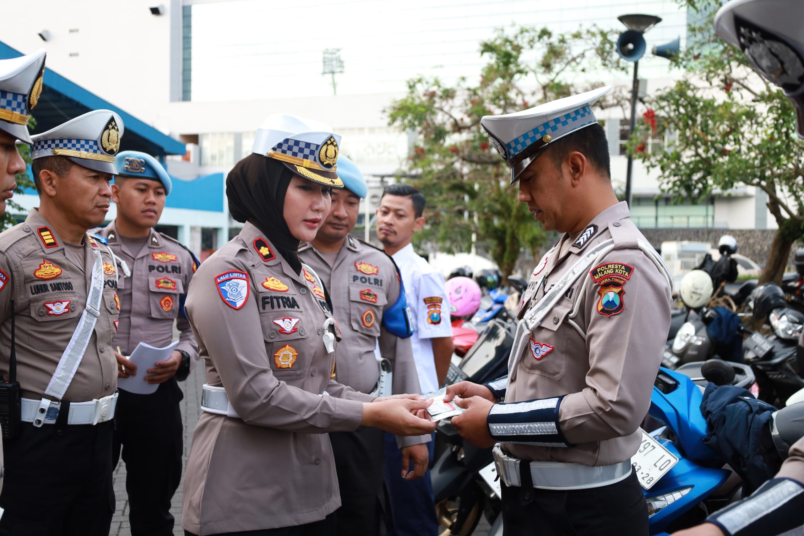 Kasatlantas Polresta Malang Kota, Kompol Fitria Wijayanti, menegaskan bahwa sebelum menertibkan masyarakat, anggota kepolisian harus terlebih dahulu memastikan kesiapan dan kedisiplinan diri.
