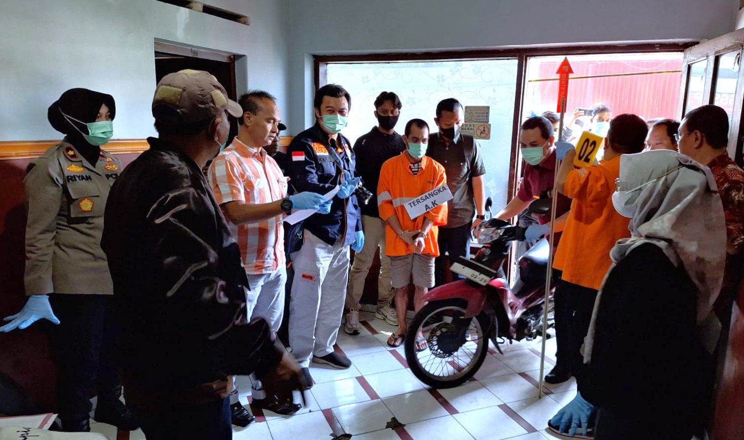 Saat rekonstruksi AK memperagakan 35 adegan, termasuk saat ia mencekik korban hingga tewas dikamar.