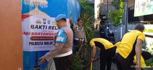 Polsek Lowokwaru – Masih suasana menjelang peringatan Hari Bhayangkara ke-79, Polsek Lowokwaru Plresta Malang Kota melaksanakan Bakti Religi di tempat ibadah Gereja Kristen Jawi Wetan (GKJW) Jemaat Dinoyo, Jl. MT Haryono Gang 10A dan TK Islam Darulkaromah Jl. Simpang Piranha Atas Kecamatan Lowokwaru, Kota Malang.