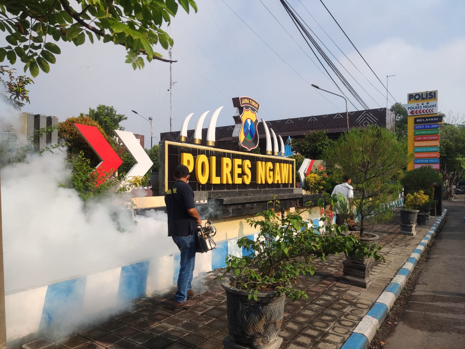 NGAWI – Memutus penyebaran wabah Demam Berdarah Dengue (DBD), seksi kedokteran dan kesehatan (Sidokkes) Polres Ngawi lakukan Fooging di lingkungan kantor Polres Ngawi.