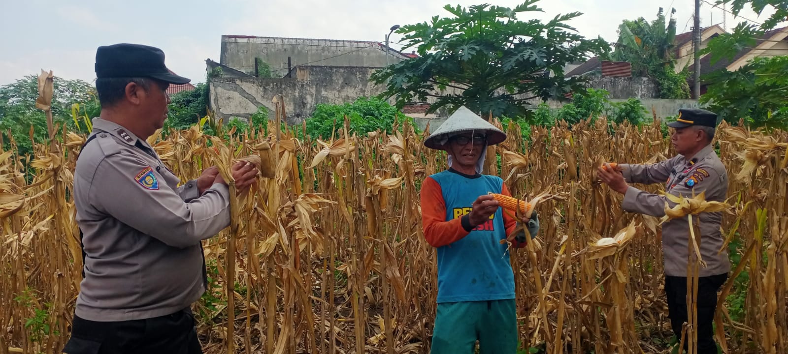 Kehadiran anggota Polsek Blimbing Polresta Malangg Kota diladang petani, sebagai implementasi program Polri peduli ketahanan pangan nasional, sekaligus mendorong masyarakat untuk mandiri secara pangan.