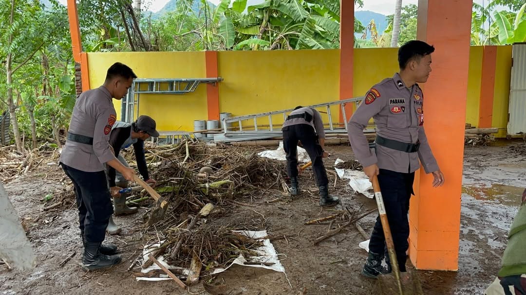 Kapolres Situbondo AKBP Rezi Dharmawan, S.I.K., M.I.K. mengungkapkan pasca terjadi banjir di wilayah Kecamatan Kendit, Polres Situbondo menerjunkan puluhan personel termasuk Sat Brimob Polda Jatim untuk membantu masyarakat membersihkan material lumpur sisa banjir di pemukiman warga yang terdampak banjir.